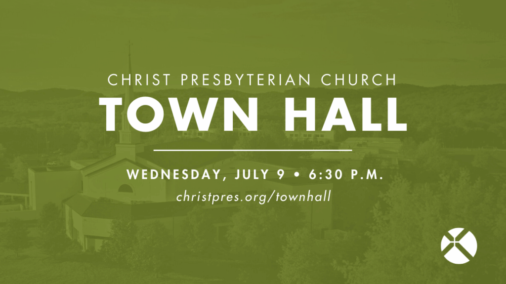 You’re invited to our first Christ Presbyterian Town Hall on Wednesday, July 9 at 6:30 p.m. in the Soli Deo Center Theatre (at the CPA Campus). Please mark your calendars and plan to join us for this important evening. Going forward, we plan to hold a Town Hall in the Fall, Spring, and Summer. This
