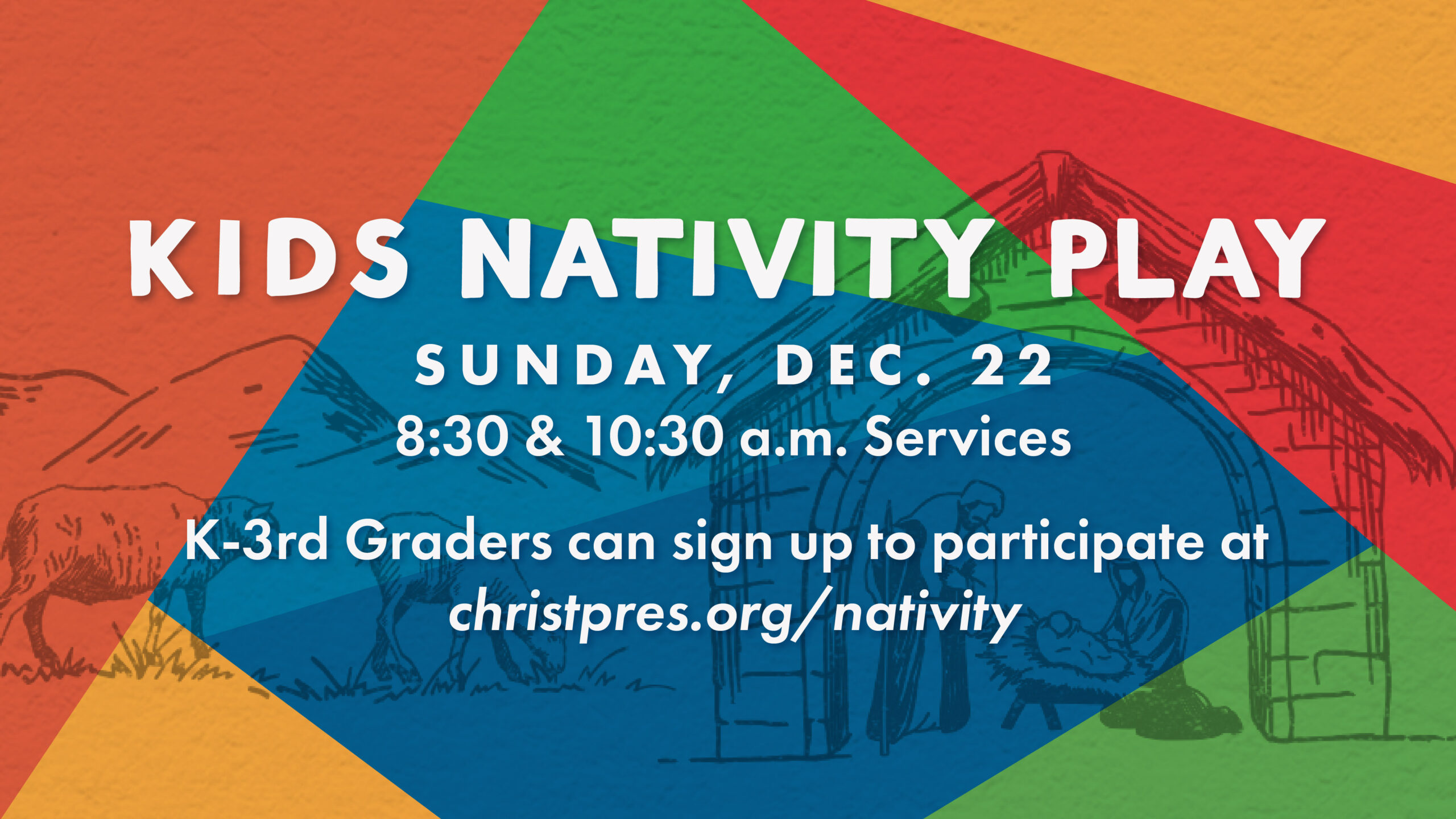Christ Presbyterian Church - Cool Springs 325 Seaboard Ln, Suite 100, Franklin, TNWe are having a simple and fun Nativity Play! For Kindergarten through 3rd grade, performing on Sunday, December 22nd at the 8:30 am and 10:30 am services. Rehearsals will be December 8th and 15th in between services from 9:45-10:15 a.m. Sign up to participate here.